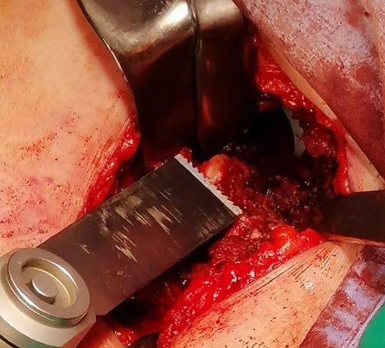 -Uso de retractores para proteger los demás tejidos. Usualmente un Hohmann debajo y otro arriba del cuello y alguna valva separando tejido blando superficial.