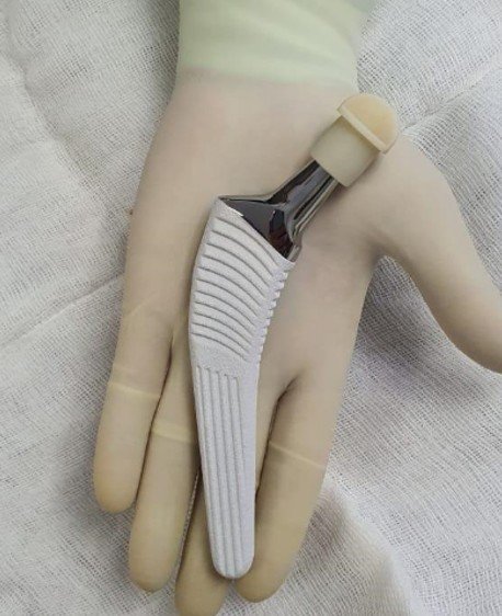 -Nuestra elección es el uso de vástagos de recubrimiento de hidroxiapatita, una cerámica artificial que el hueso reconoce como propia y se fusiona con ella en un fenómeno llamado osteointegración.